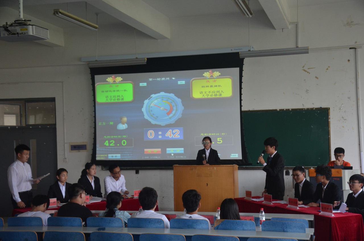 本次决赛共有4支队伍参加。首先上场的是来自pg游戏电子模拟器的“自动化五班队”与来自电子学院的“四辩最帅队”,他们的辩题是:大学语文应不应该成为必修课程。比赛过程中,双方选手在立论、驳论等各个环节中思路清晰、引经据典,字字珠玑,使现场气氛迅速升温。在随后进行的自由辩论环节中,双方选手就辩题展开更深层次的辩论,个个妙语连珠、舌绽莲花的辩论一次次将比赛推向高潮,也点燃了现场气氛。现场观众还未从第一场的精彩辩论中缓过神来,来自pg游戏电子模拟器的“电气一班队”与来自电子学院的“就是很队”就开始了第二场的比赛。他们的辩题是:文化传承需不需要融入潮流。双方辩手并没有因为上一场的精彩比赛而影响自己的思路,双方你来我往、侃侃而谈,纷纷对辩题提出自己的观点,观众们不时响起的掌声更是将气氛一次次推向高潮。