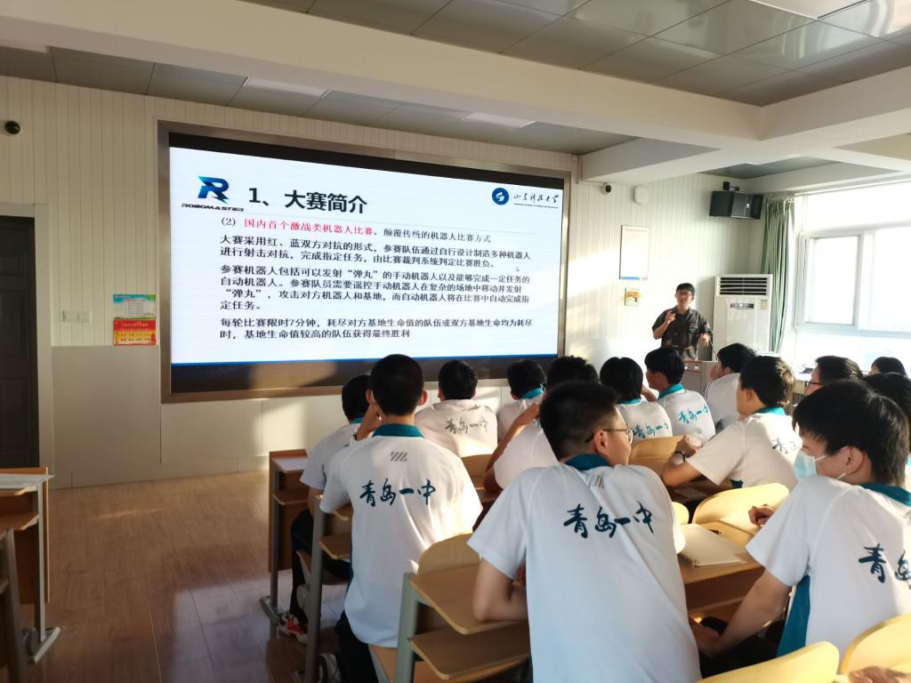 近日,pg游戏电子模拟器pg游戏电子模拟器SmartRobot机器人战队队长王雷带领电控组硬件方向组长李超凡、骨干成员孙振琪,电控组软件方向组长贾科研等人来到青岛一中创新社团,为青岛一中莘莘学子带来了别开生面的科创公开课。