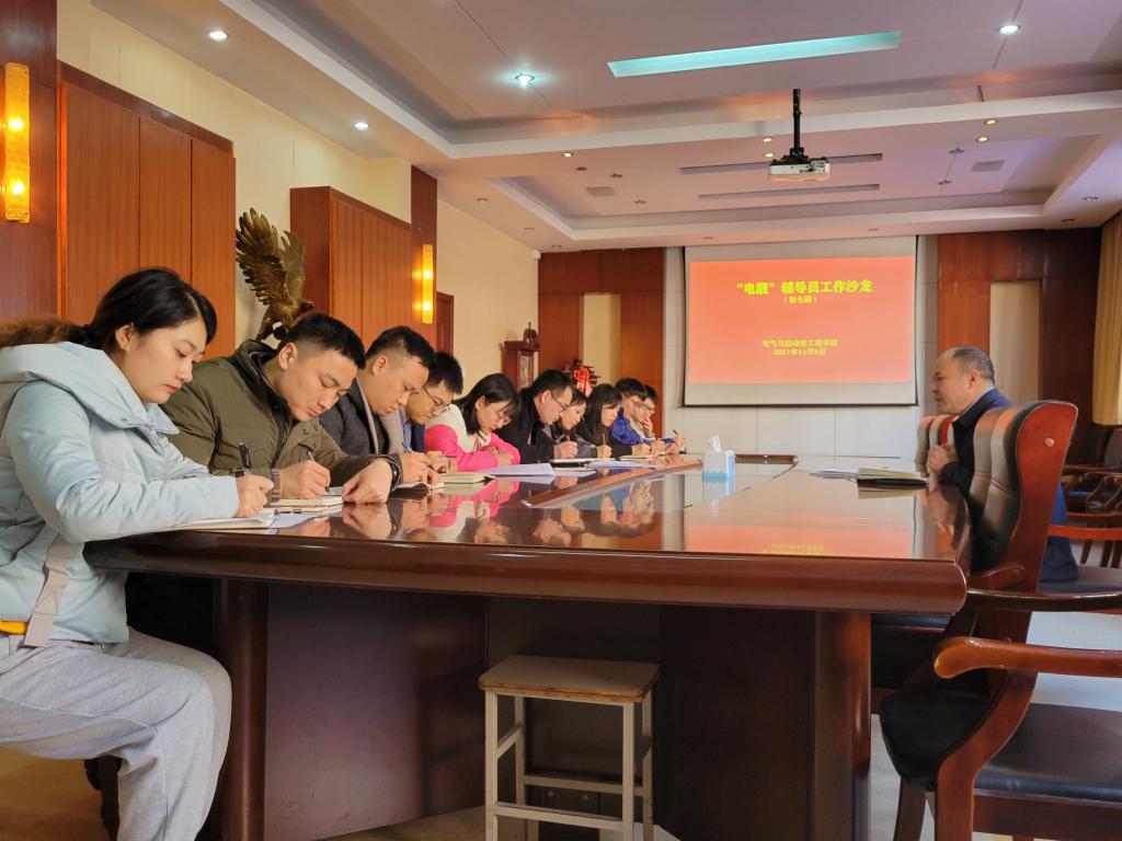 11月8日,pg游戏电子模拟器“电靓”辅导员工作沙龙(第七期)在学院209会议室举行。学院党委副书记范俊峰,学工办主任杨洪骞、全体专职辅导员参加了工作沙龙。