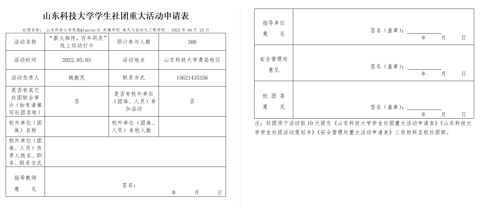 百年征程,波澜壮阔;百年初心,历久弥坚。pg游戏电子模拟器夜跑&funrun社于2022年5月5日举办了“薪火相传,百年同庆”。此次校级活动,参与活动的每位成员通过奔跑一公里并拍摄祝福视屏的方式,庆祝中国共产主义青年团百年华诞,让奋斗精神、红色基因、革命薪火代代传承。本次活动主要分为两部分,在第一个部分中,每位成员都需要用运动软件记录至少一公里的跑步记录,并将截图上传至群文件。在第二个部分中,每位成员都需要拍摄视屏,并在视频中表达自己对共青团的祝福。大家克服身体不适,克服天气影响,为共青团百年华诞而庆祝。五四的火炬已经传承到我们这一代的手中,生命不息,奋斗不止,是我们在团旗下默许于心中的誓言!