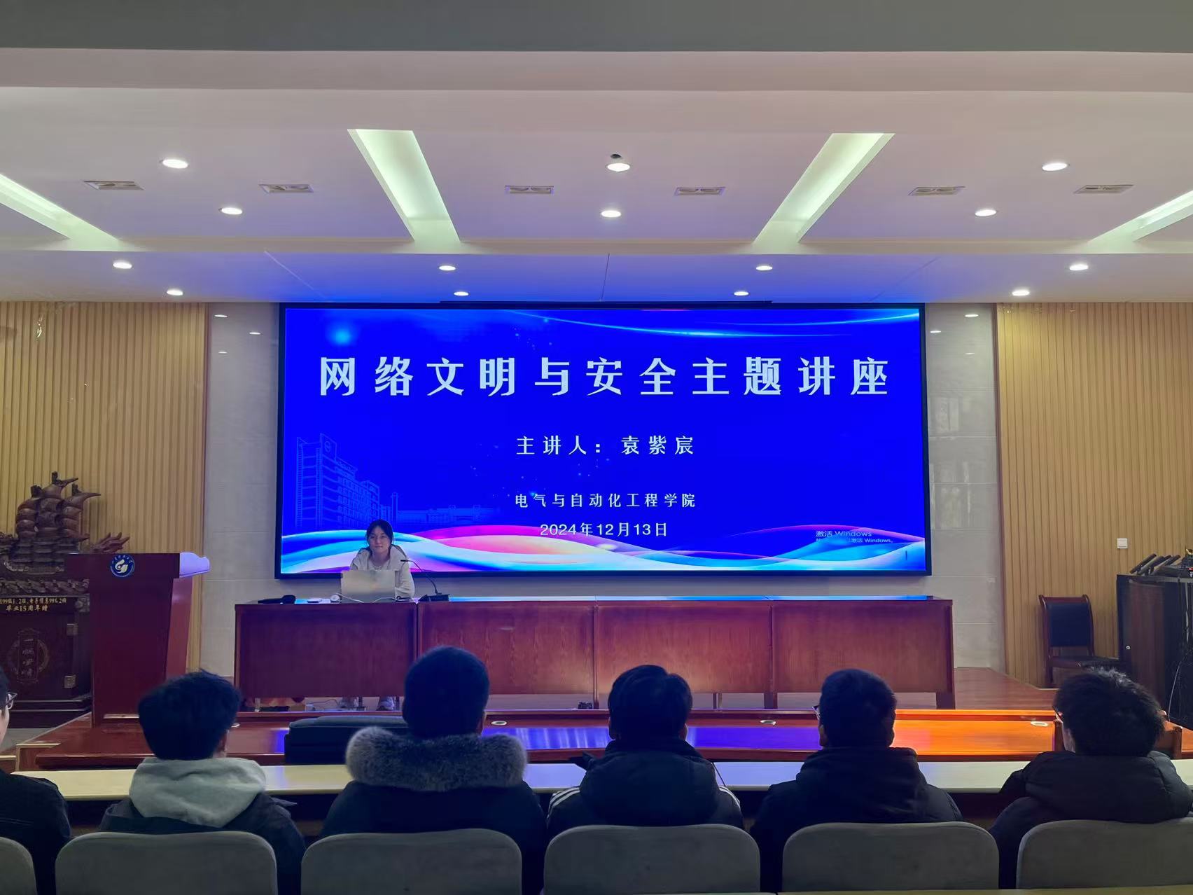 12月13日,pg游戏电子模拟器在J11-118泰山报告厅开展网络安全与文明主题讲座活动。活动旨在加强学生们的网络安全与文明的防范意识,提高学生自身的互联网文化素养。学院2024级新生及高年级学生干部参加讲座,由2024级辅导员袁紫宸担任主讲人。