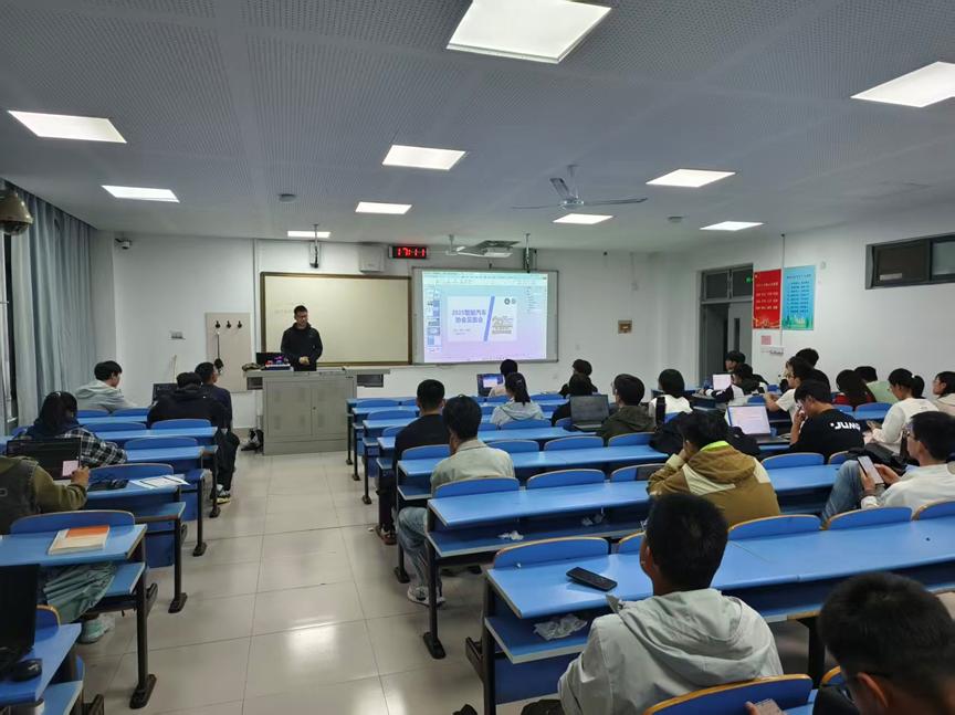 在社团成员的精心筹备下,宣讲活动顺利拉开帷幕。活动伊始,主讲人首先带领与会师生回顾了智能车竞赛的发展历程、核心背景与未来趋势。作为一项融合控制工程、电子技术、计算机编程、机械设计等多学科知识的综合性赛事,智能车竞赛不仅是考验学生专业技能与团队协作能力的 “竞技场”,更是培养创新思维、锤炼实践本领的 “练兵场”,其独特的学科融合性与实践创新性赢得了现场师生的广泛认同。
