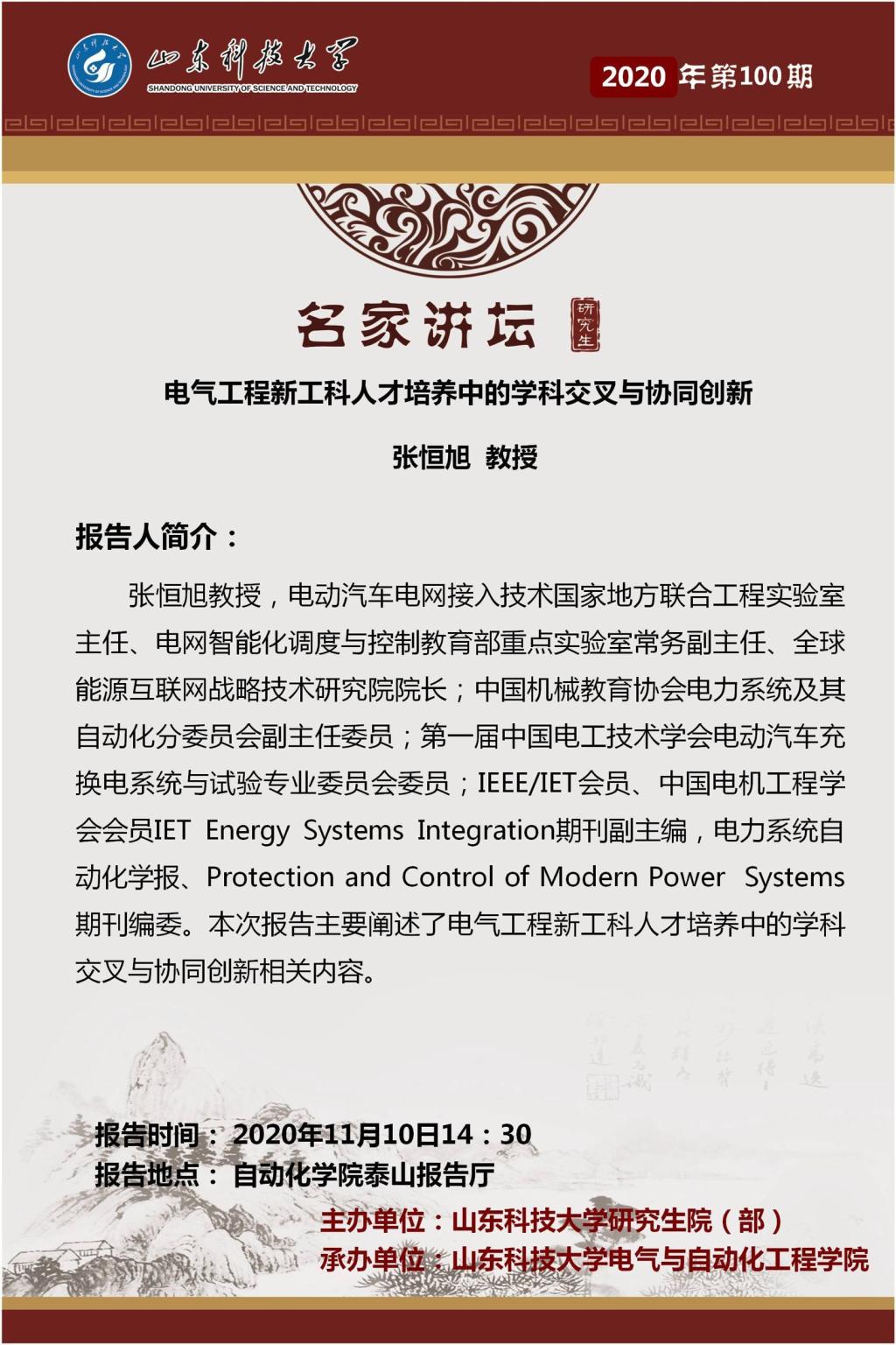 pg游戏电子模拟器承办第100期“名家讲坛”:张恒旭教授