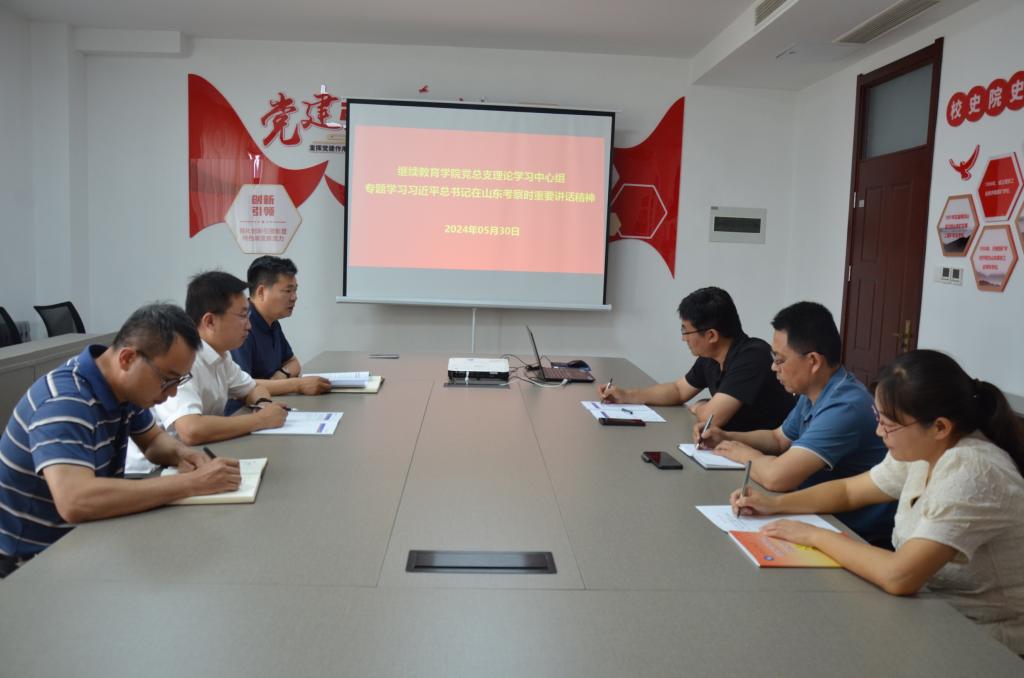5月30日上午,开云kaiyun官方网站党总支理论学习中心组开展2024年第七次集体学习,专题学习习近平总书记在山东考察时的重要讲话、省委常委会扩大会议、全省领导干部会议以及学校干部会议精神。党总支书记贾长响主持学习,学院党总支理论学习中心组成员参加学习。