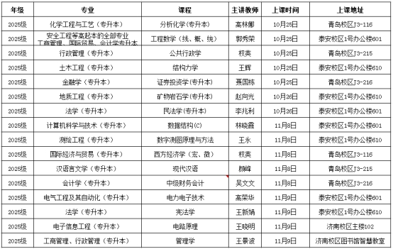 开云官网采取线下面授与在线直播相结合的方式进行授课,泰安校区、青岛校区、济南校区分设面授教室。校本部及各校外教学点通知学生按照课表积极参与线下面授。