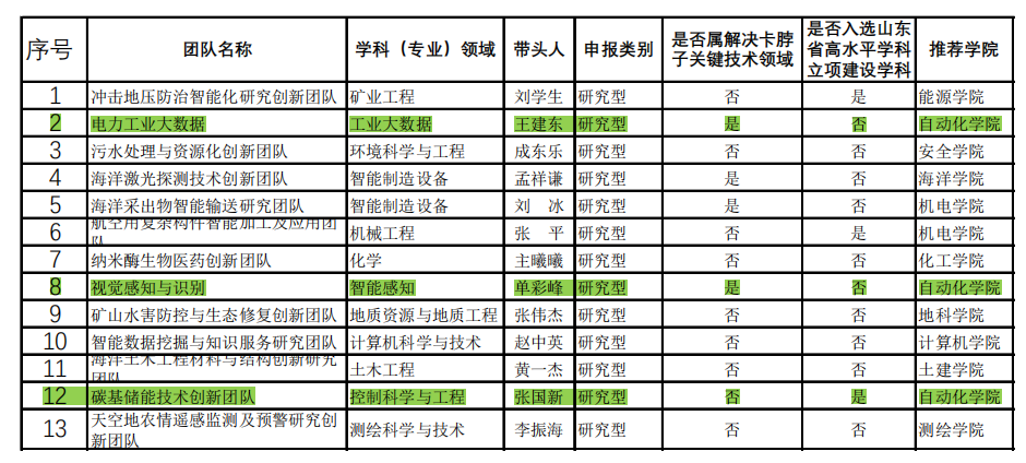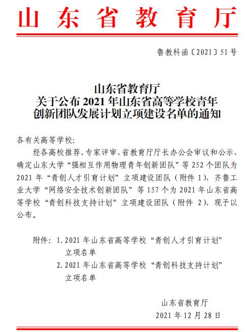 2021年获批的三个山东省青创团队
