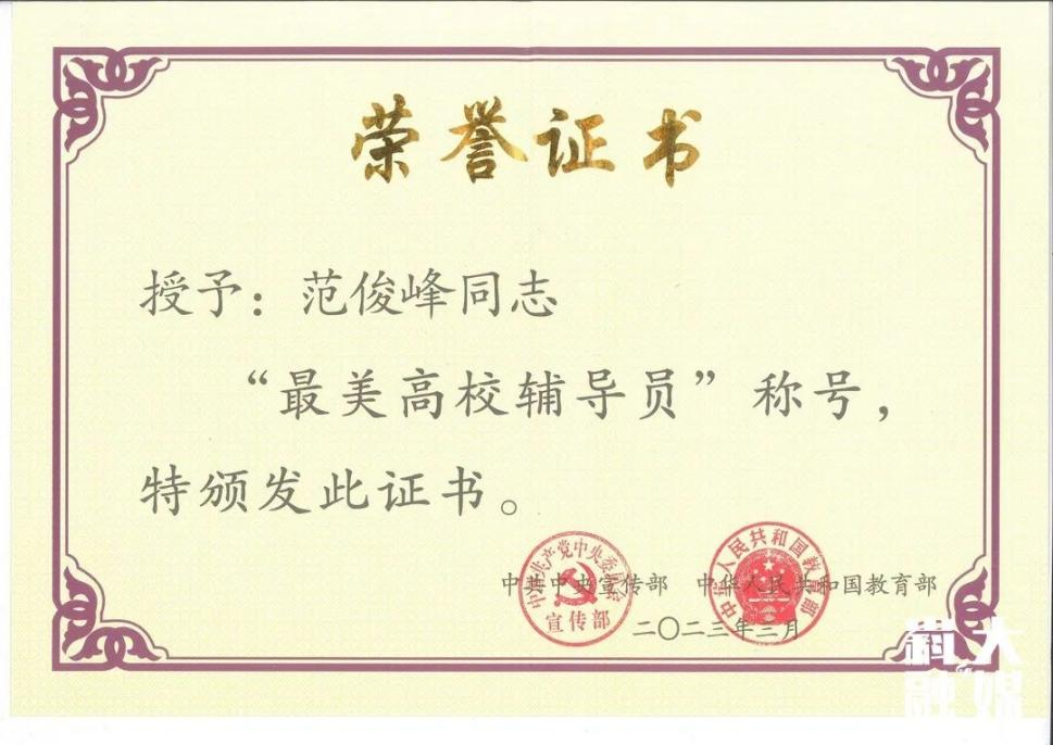 全国高校最美辅导员范俊峰